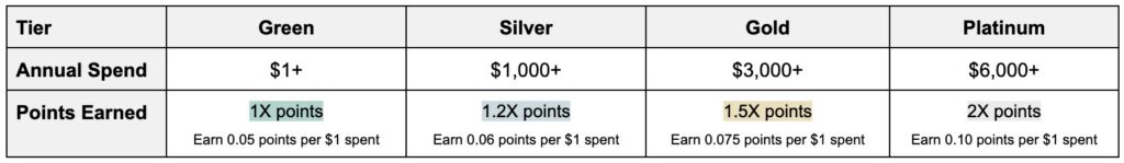 - New Tier Status Activation: Membership tiers are activated once the annual spending minimum for that tier is met. Once achieved, the tier status is maintained through the following calendar year.